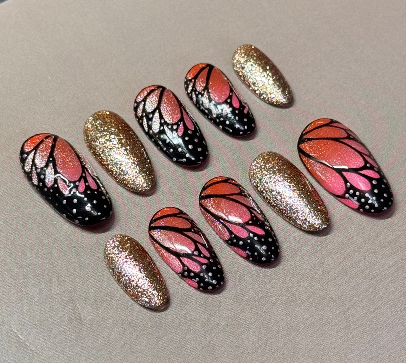 - 10 press on nails (standard or custom sizing)